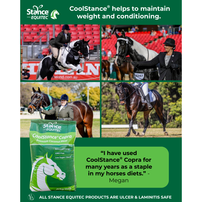 “I have used CoolStance® copra for many years as a staple in my horses diets. They love the taste and it has helped to maintain weight and conditioning.”- Megancool Read More