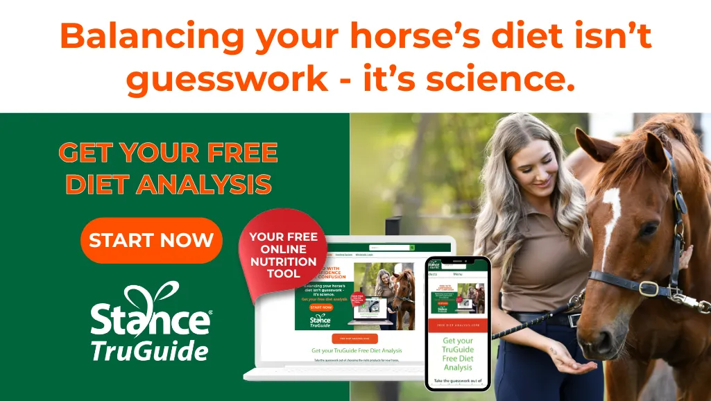 - Free Diet Analysis: Take the guesswork out of feeding. Stance TruGuide is a free, easy-to-use tool that delivers a tailored and balanced diet plan based on your horse's current feed, pasture, hay, and individual needs.