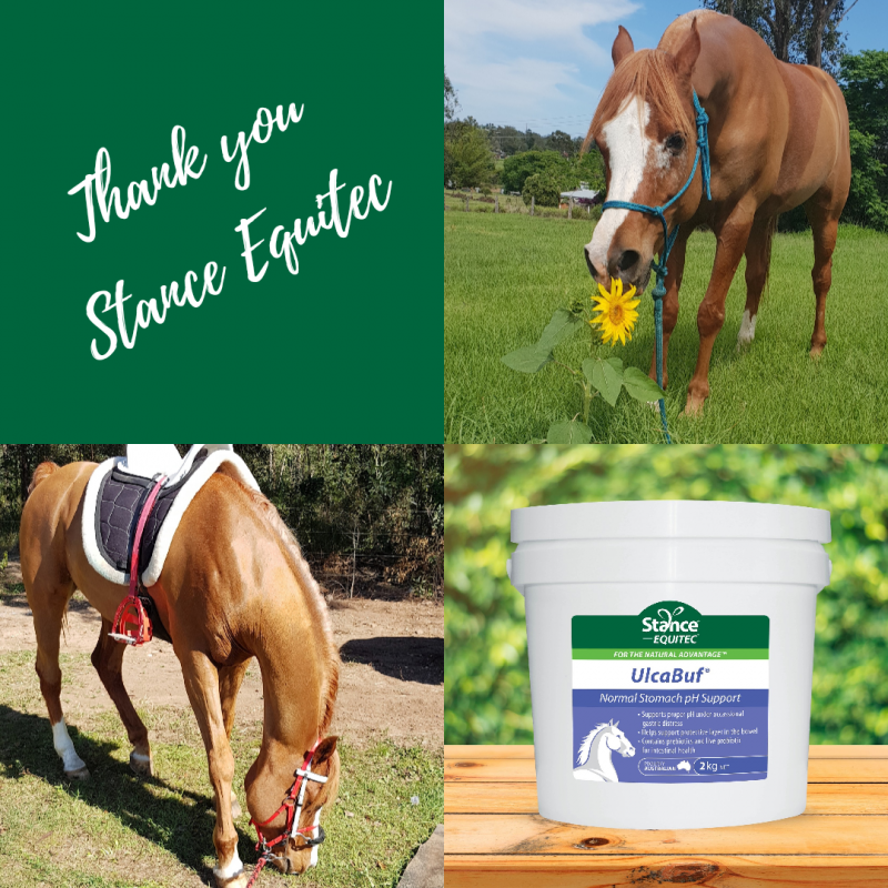 "My 6 year old's whole demeanour had changed to the point of her becoming dangerous to approach, rug, feed, catch etc., let alone ride! Then, three weeks ago I started feeding her UlcaBuf. I changed nothing else. Two weeks in and she was a different horse! She is friendly and happy to see me and almost even sooky! I am so impressed with your UlcaBuf, that I would recommend it whole heartedly. Thank you so much."- Sharyn