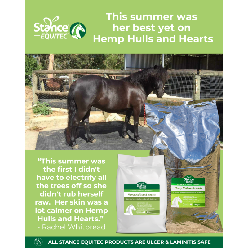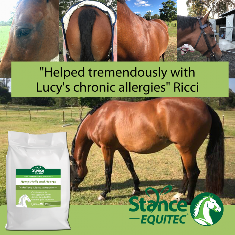 "I have found that the Tumericle and Hemp Hulls & Hearts helped tremendously with Lucy's chronic allergies. I have had Lucy clinically diagnosed and found that she is allergic to multiple different things such as Johnson's grass and gum trees. This is a chronic issue that occurs all year round, and utilising the Stance Equitec Hemp Hulls & Hearts and Tumericle helps to keep the itching at bay." - Ricci Read More